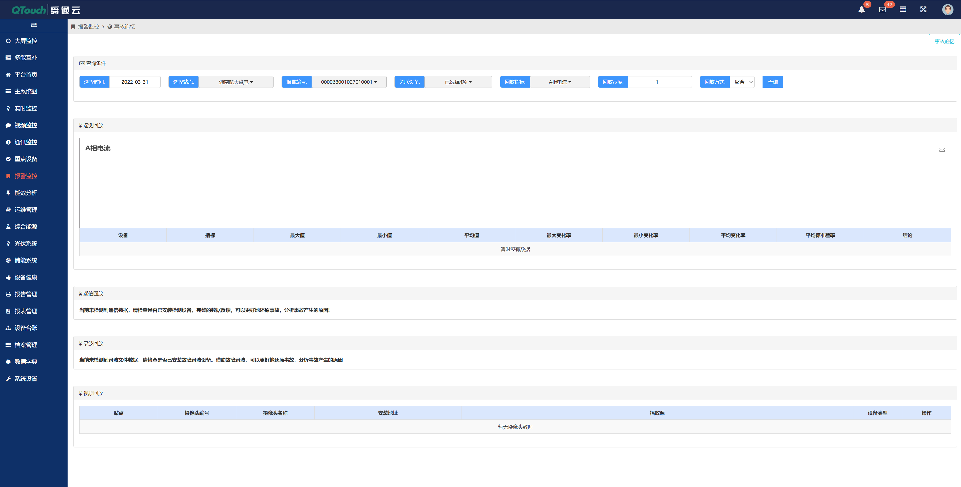 通过对遥信、遥测、录波以及视频的告警数据的回放,还原事故的发生,分析事故产生的原因。